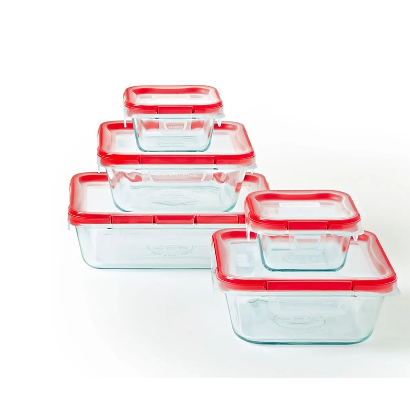 Introducing the Pyrex 10-Piece FreshLock Glass Storage Set, perfect for all your food storage needs. Made with high-quality glass and durable plastic, this set is designed to keep your food fresh and easy to access.