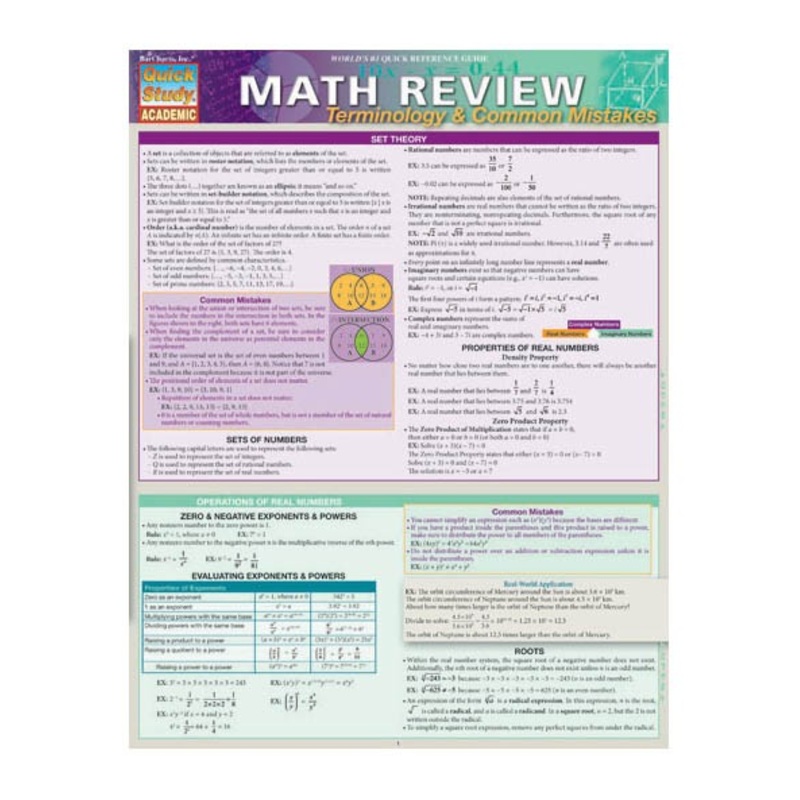 QuickStudy Math Review-Terminology and Common Mistakes Laminated Study Guide