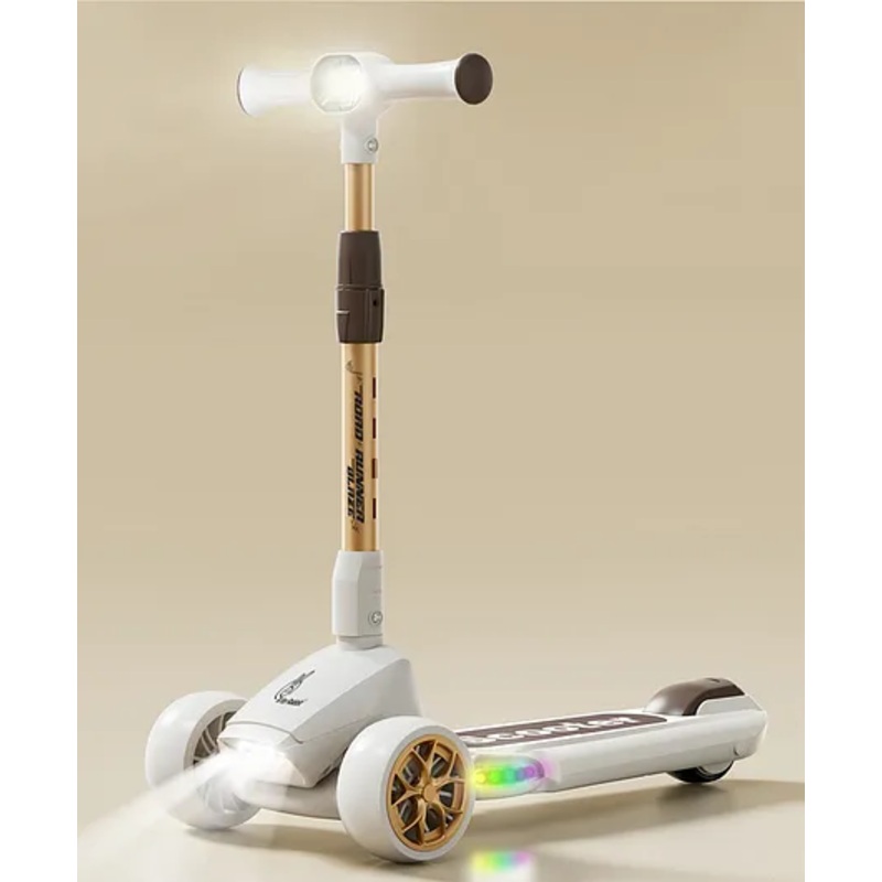 R for Rabbit Road Runner Blaze Foldable Kick Scooter for Kids with 4 Level Adjustable Height, PU LED Wheels, Lights and Music for 3+ Years Baby Boy & Girl of Upto 75kg Weight (Cream Gold)
