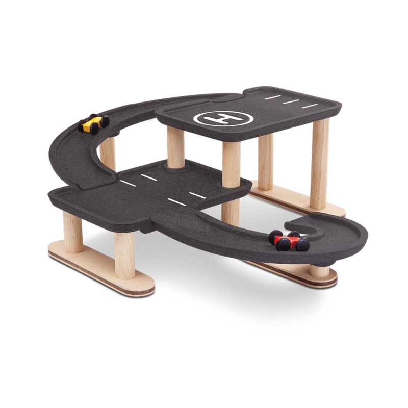 - The PlanToys Race N Play Parking Garage is hours of fun for children to park their favorite cars on multiple levels and race them down the ramp to see which is fastest