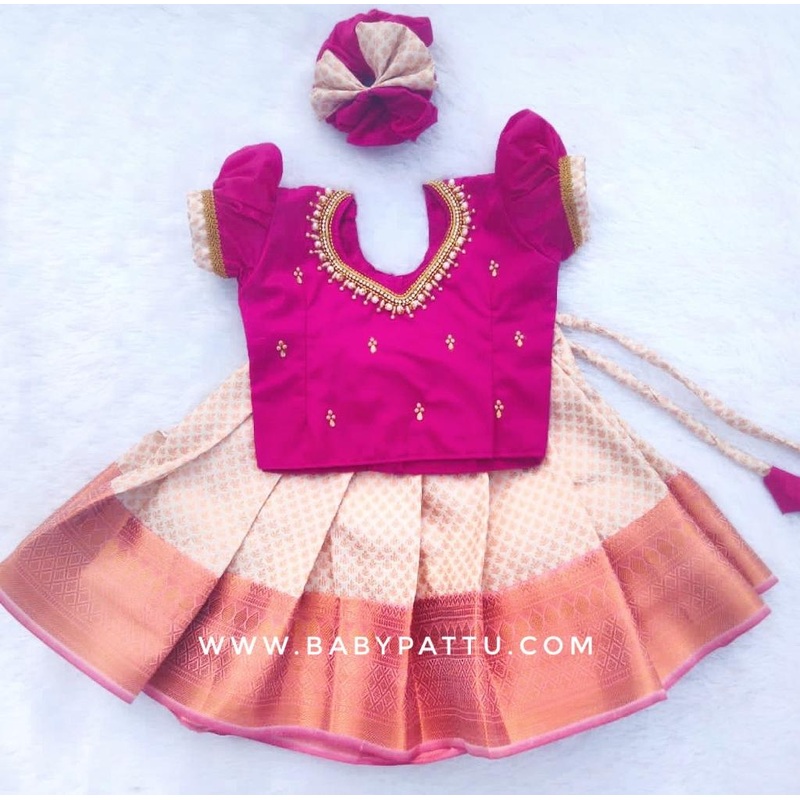 RANI PINKTOP AND HALF WHITE BOTTOM PATTUPAVADA