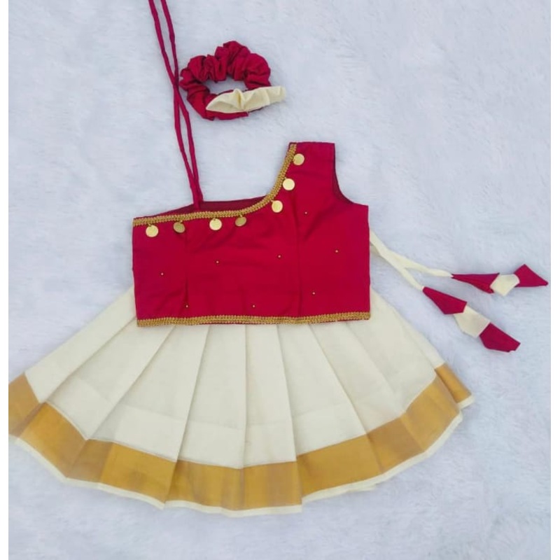 NY76387777Red and Kerala White Pattu pavada
