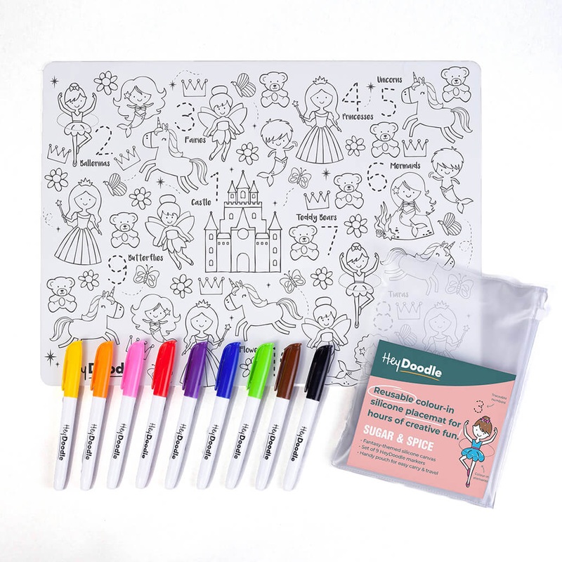 Practice writing the number figures whilst counting to find all items corresponding to them. Make the fairies and unicorns come to life with bursts of color!And then do it all again by simply washing off the color.Pack includes 1 HeyDoodle Mat, 9 HeyDoodle