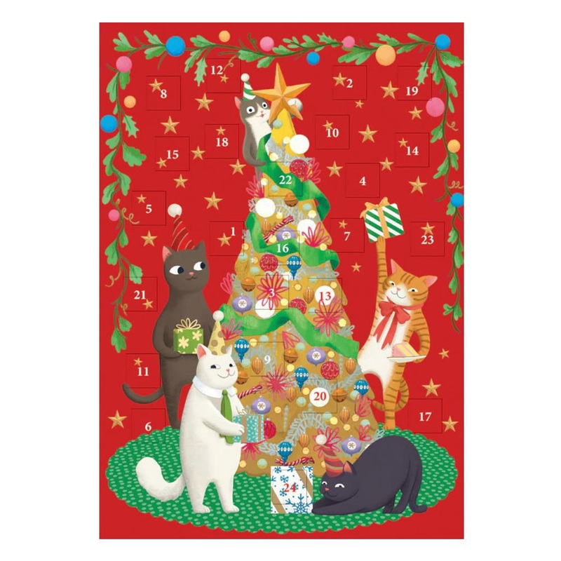 This Advent Calendar Greeting Card features artwork by Jennifer M Potter of cats gathered around the Christmas tree.