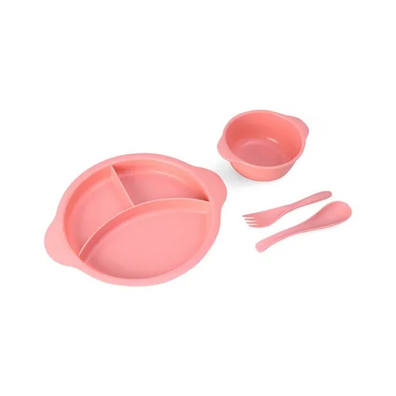 Round Shaped Sectioned Plate with Bowl Spoon & Fork – Pink