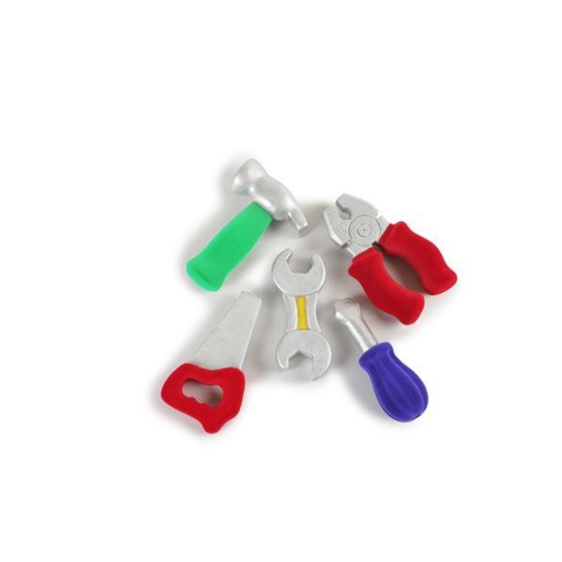 Consists ofatoy saw, hammer, spanner, screwdriver, and pliers.