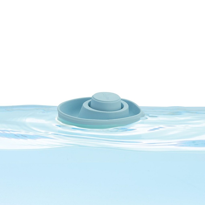 It's a rubber boat that explores both the surface and the underwater depths! By Simply pressing the center of the hull and turning it over, the boat becomes a submarine. This makes for an extra unique play experience during bath time and water play. Challe