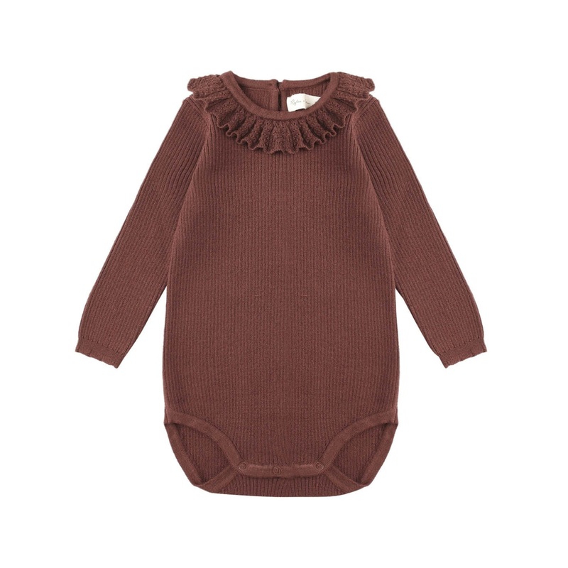 Ruffle Collar Bodysuit – Burgundy by Rylee + Cru 3-6M
