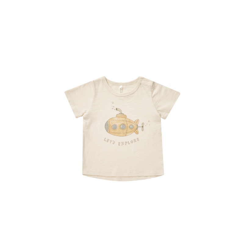 Relaxed fit basic tee made from the softest cotton jersey. Baby sizes 0-3m thru 18-24m have snaps at the shoulder for easy changing.Featuring our submarine print on natural.Care: Machine wash cold. Tumble Dry low.Made of 100% Cotton