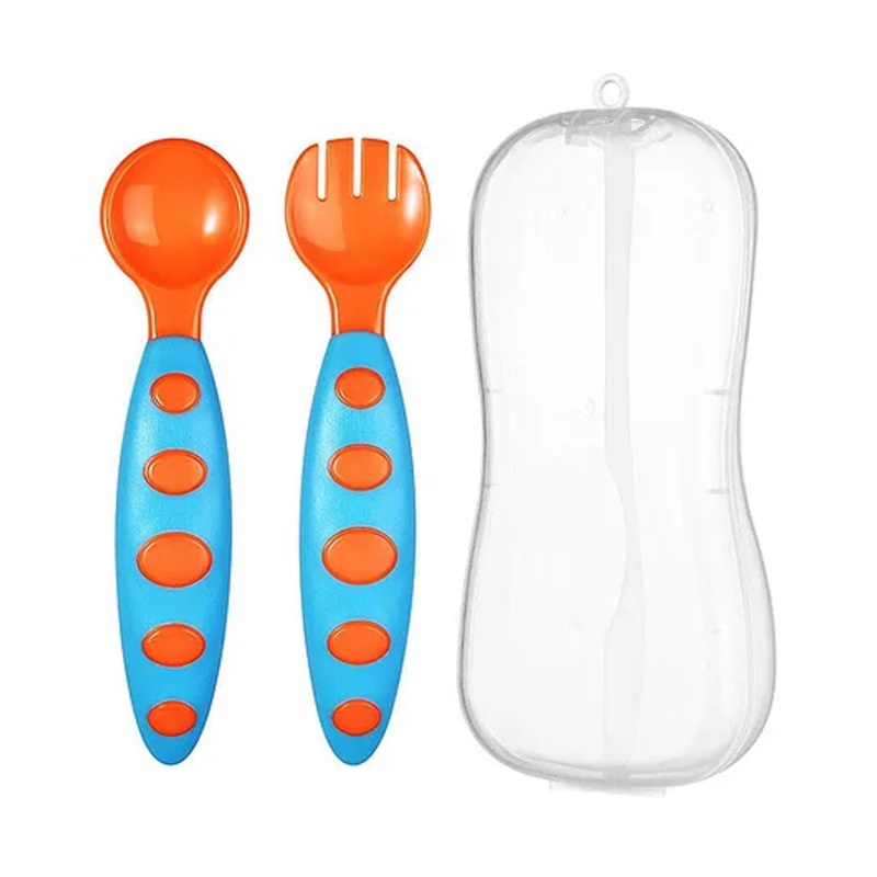 Safe-O-Kid Baby Spoon Fork and Case Set – Blue & Orange
