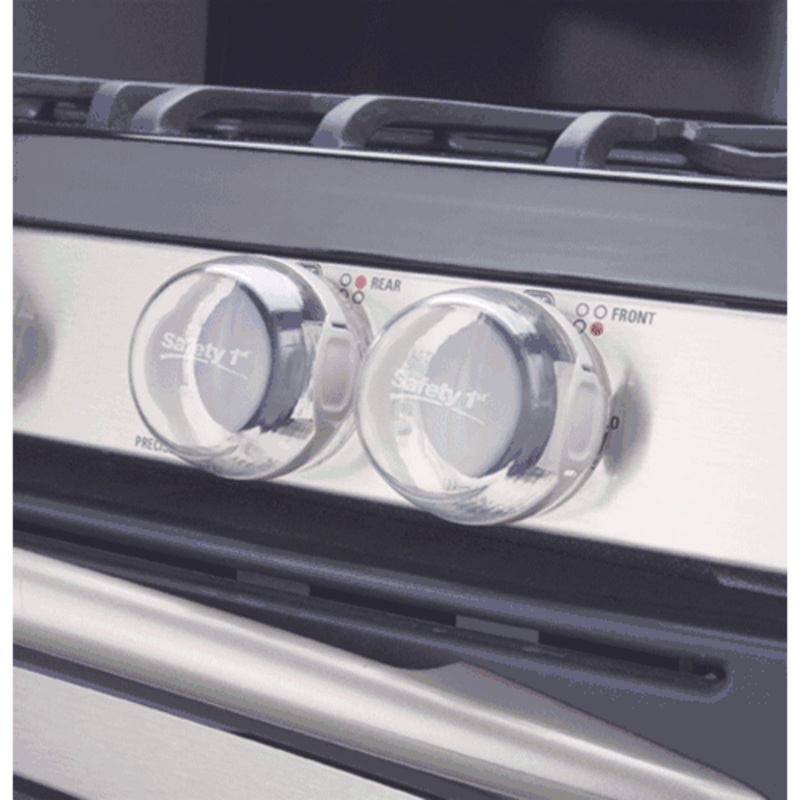 5 Pack Helps keep stove knobs off-limits to children! Updated universal design. Hinged lid for convenience. Durable and heat-resistant. Easy, non-adhesive mounting.