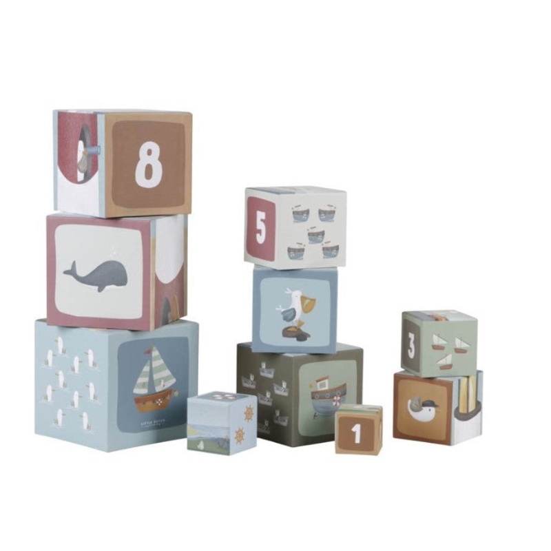 With these building blocks, children will playfully learn to count to 10. The blocks feature lovely illustrations from the Sailors Bay collection. Can you point out the seagull, sailboat and pelican? You can stack the blocks to build a tall tower, or put t