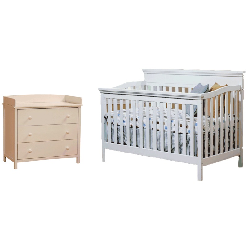 SB2 Katherine 2 Piece Nursery Set in White – Crib & Simple 3 Drawer Dresser