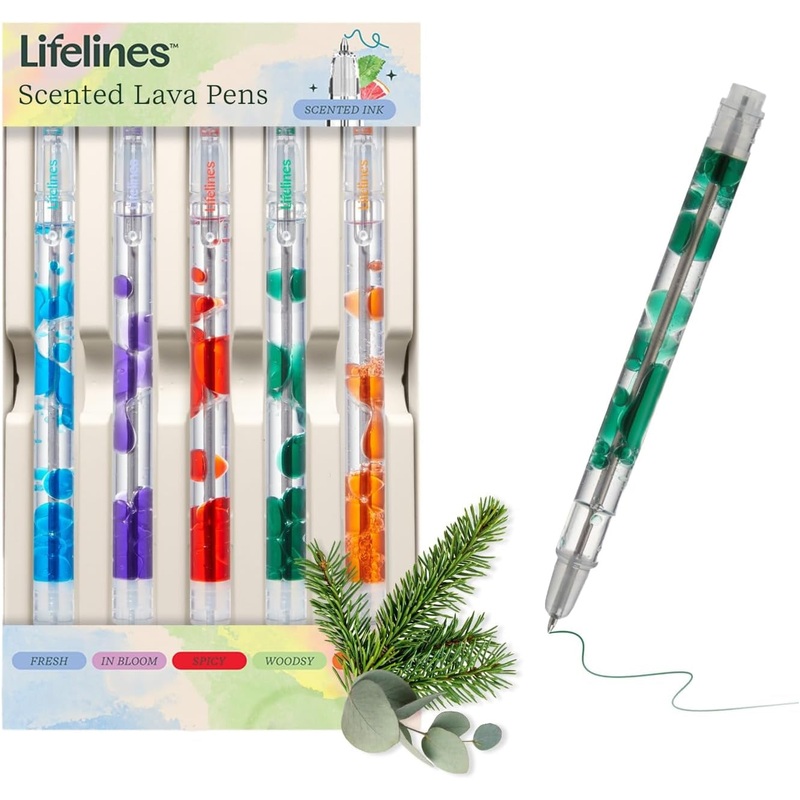 Scented Lava Pen Set Of 5Doodle, journal, or take notes with five Lifelines Scented Lava Gel Pens.The enchanting symphony of scented ink and flowing lava bubbles engages your senses and soothes your mind.Each pen has a unique, invigorating scent from our E