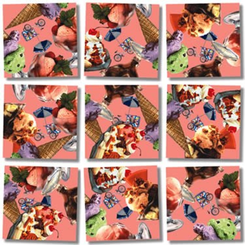 Scramble Squares Ice Cream"Easy to Play, but Hard to Solve" is the motto for this deceptively simple-looking puzzle. By the time you've become addicted and find yourself unable to solve the thing, you'll realize it's not so much a motto as a warning.Nine c