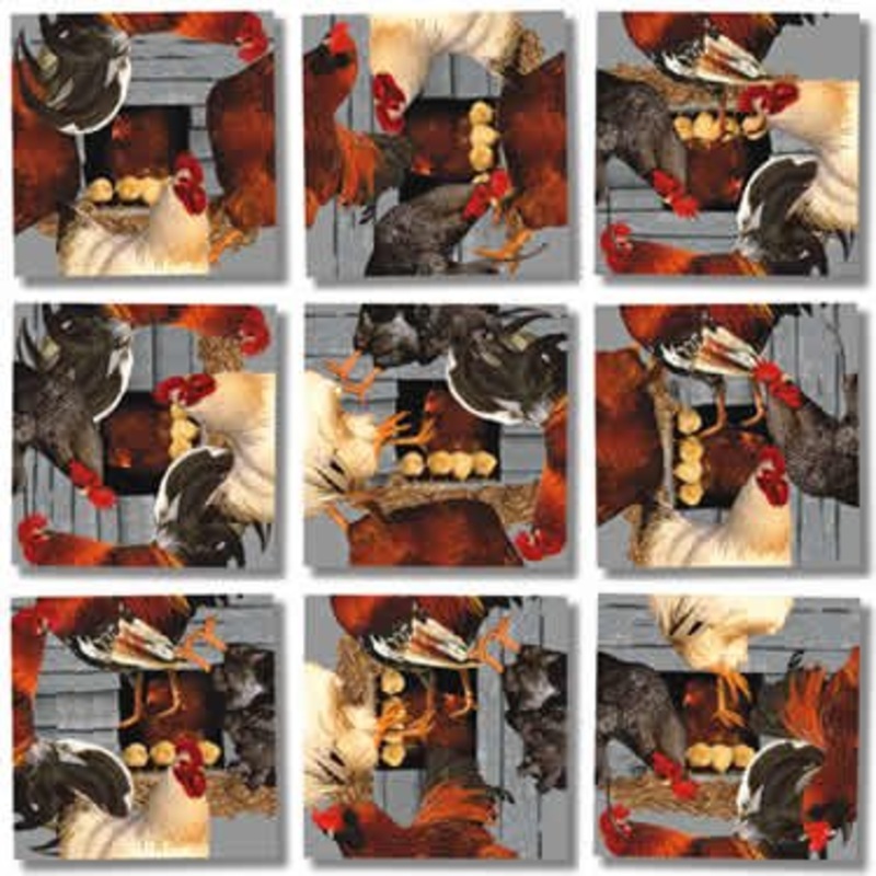 Scramble Squares Roosters"Easy to Play, but Hard to Solve" is the motto for this deceptively simple-looking puzzle. By the time you've become addicted and find yourself unable to solve the thing, you'll realize it's not so much a motto as a warning.Nine co