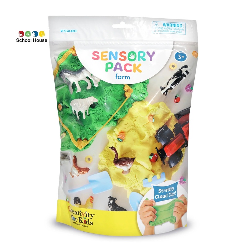 With Sensory Pack Farm and farm-themed components, toddlers will engage the senses and build fine motor skills, as they explore all of the textures, colors and shapes. This sensory play activity features two colors of super-soft, lightweight, stretchy cloud clay, offering endless squishing, stretching, stamping, and molding fun. Cloud clay is perfect for little hands, remaining pliable and never drying out. Plus, a cool tractor, 8 farm animals and other intriguing farm objects enhance the sensory experience, adding an extra layer of excitement.