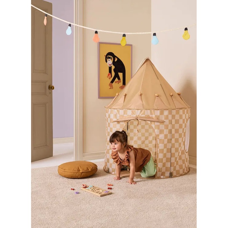 The play tent is an imaginative playground for children of all ages. With its detailed design including stars and a bunting garland hanging from the ceiling, it’s a perfect place to play, dream, and use their imagination.
