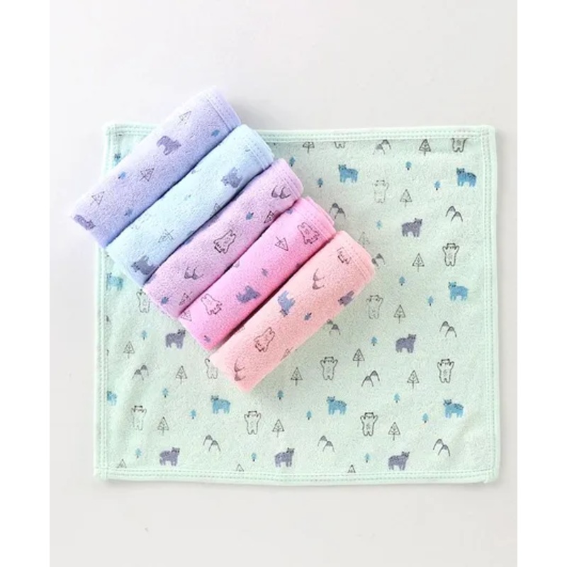 Simply Terry Knit Animal Printed Wash Clothes Pack of 6 – Pink Lilac & Aqua Blue