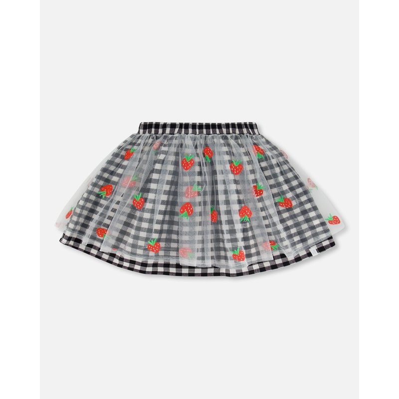 Skirt With Embroidered Mesh Little Vichy Black And White