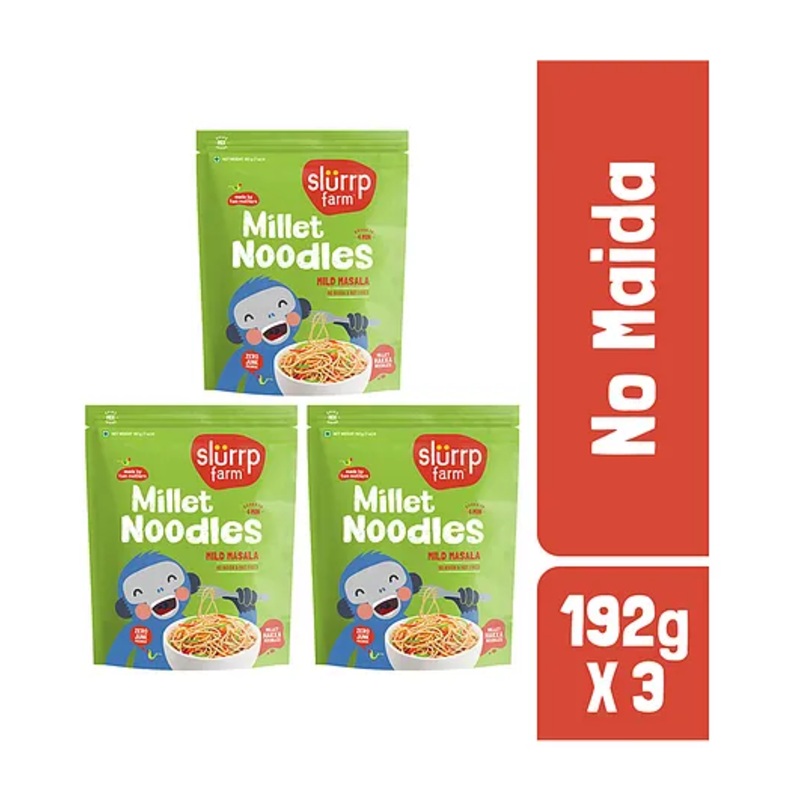 Slurrp Farm No MSG, Not Fried Hakka Noodles Mild Masala Millet Noodles Pack of 3 – 192 gm Each