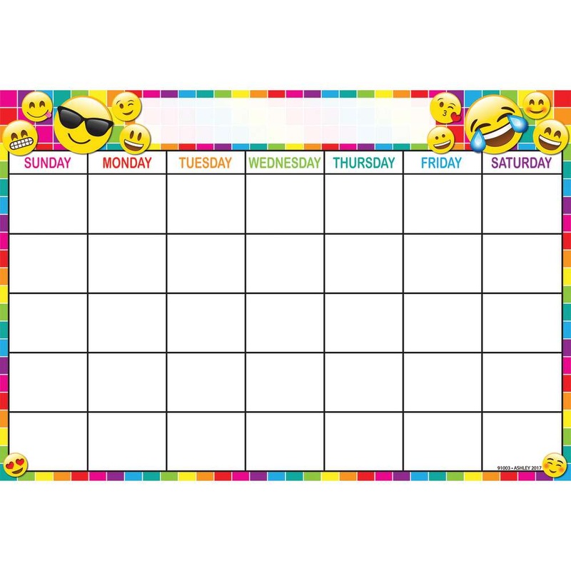 Smart Poly Emoji Monthly Calendar 13" x 19", Decorative and fun.Write-on, wipe-off heavy duty, washable all POLY chart. NO LAMINATION NEEDED, NOT A PAPER CHART. Use with dry erase and damp wipe markers. Use pins, tacks, staples, etc to hang in classroom or
