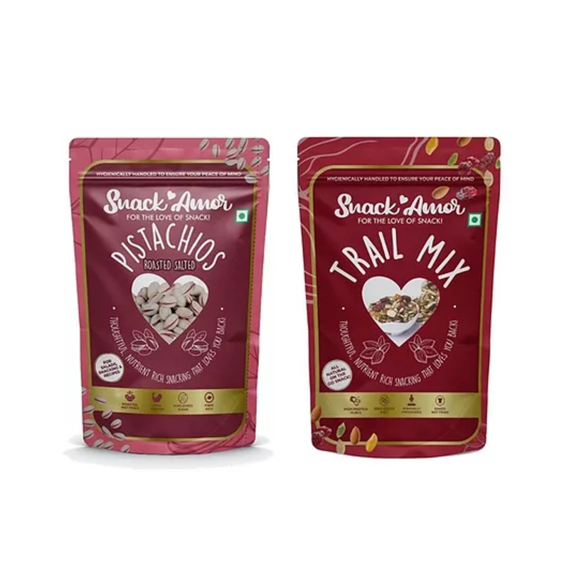 SnackAmor Combo Pack Of Premium Roasted Salted Pistachio And Trail Mix – 345 gm