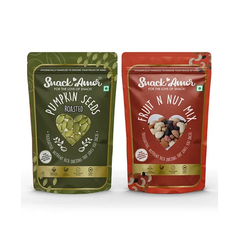 SnackAmor Combo Pack of Premium Rosted Pumpkin Seeds And Fruit n Nut Mix – 200 gm Each