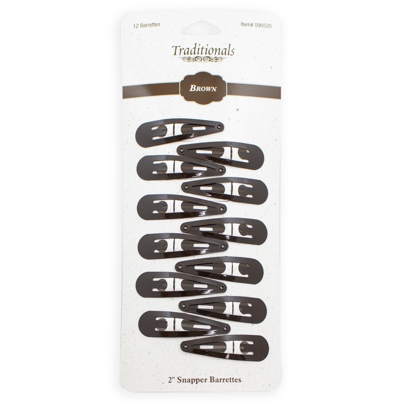 Use these medium barrettes to hold hair or fasten hair accessories, veils, head bands, etc. 2 inch longEnamel coated12 barrettes per cardTraditionals Snapper Barrettes 2-inch 090520