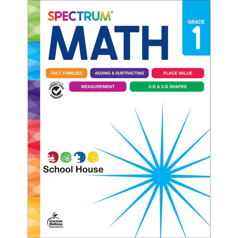 Provide a spectrum of math support for your first grader with the Spectrum 1st grade math workbook.This standards-aligned math workbook helps kids stay at the top of their math game with engaging addition and subtraction practice, identifying fact families, understanding place value, and more. Parent support pages are included at the beginning of each chapter with helpful definitions, tools and tips, and a skills list to support your child along the way.