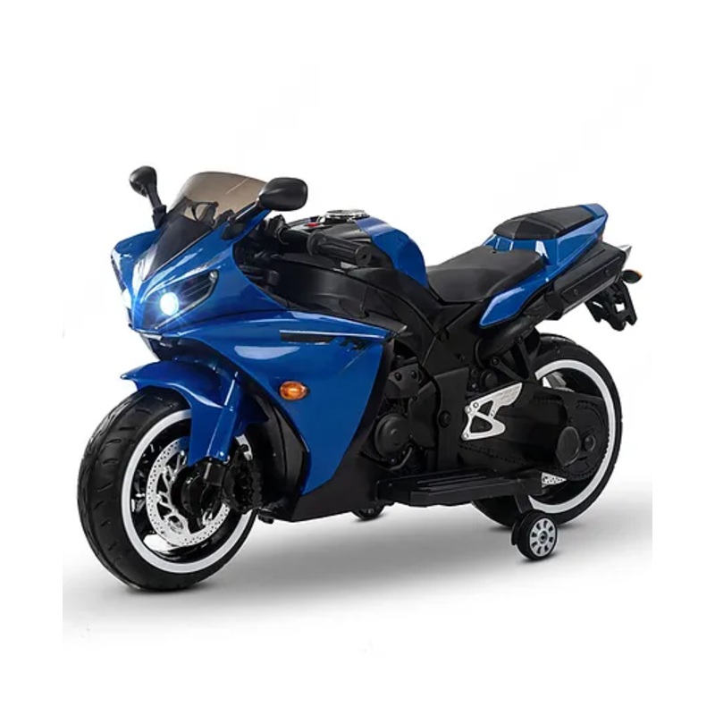 - Multi-Feature Electric Bike This Kid’s bike has an inbuilt music button, working headlight, USB Port, on and off switch, hand accelerator, foot brake, and Training Wheels. simply press the Forward-Backward switch and then press the accelerator to move realistic engine sounds are fun and interactive for kids and It gives a realistic driving experience for your kids.