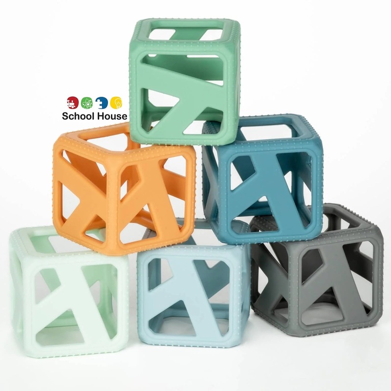 Stack them! Squeeze them! Chew them!The Stack N Chew Mini Cubes are a developmental teething toy. They are BPA-Free and made of food-grade silicone, making it safe for baby’s tender gums. The flexible holes help strengthen baby’s gripping skills. The contrasting modern colours stimulate hand-eye coordination and promote motor skills such as stacking and carrying. Easy to travel with, it encourages imagination – even for water play!