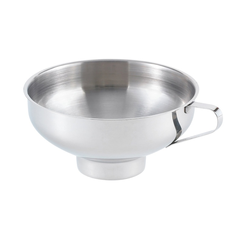 A canning funnel helps to keep your jars clean and avoid spills. Fill jars with hot and cold food safely and quickly.Use with any size of jars5.5 inches wide, 2.25 inches deepStainless steel
