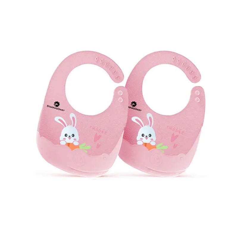OCAL33215268465StarAndDaisy Reusable Silicone Baby Bib with Adjustable Buttons for Mess-Free Feeding, Weaning, and Easy Cleaning and Waterproof. (PACK OF 2-PRINTED LIGHT PINK)