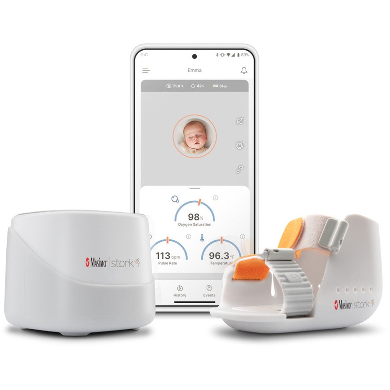 - Continuously track key health indicators like baby temperature, pulse rate, and oxygen saturation (Sp02)