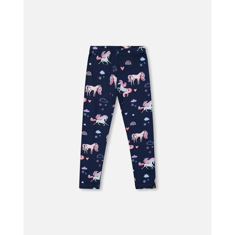 Stretch Jersey Leggings Navy Unicorn Print