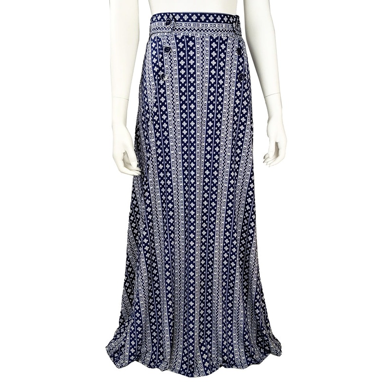 Striped Button Tab Maxi Skirt SK4467