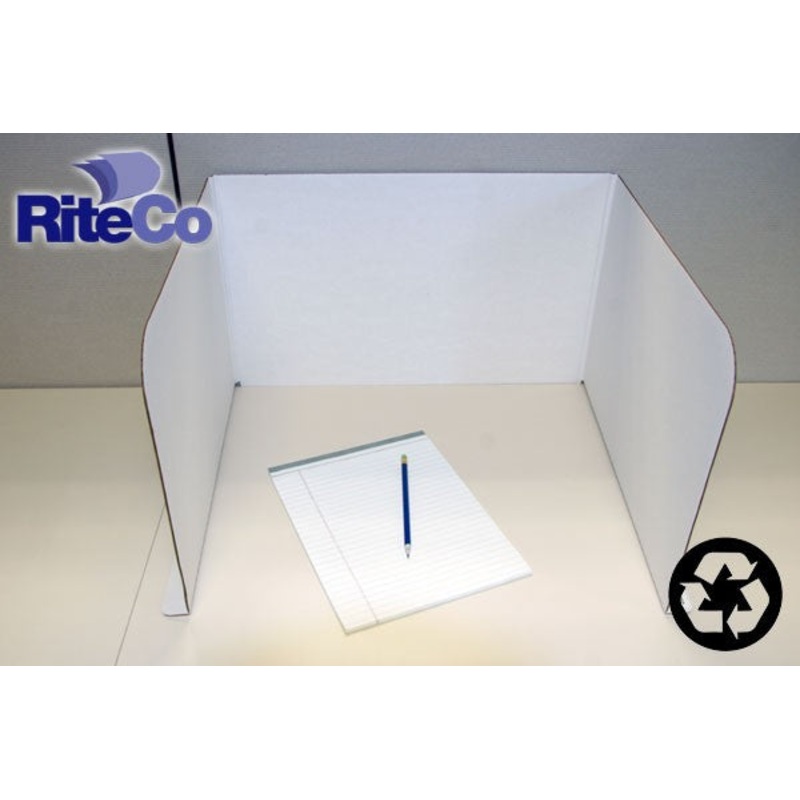 Three panel study carrel. Lightweight and economical. Essential when privacy is required. White on both sides. Recyclable.Size: 13.25" x 55"
