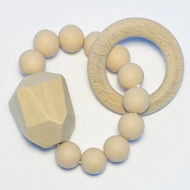Sugar + Maple Silicone + Beechwood Teether Gem – Natural