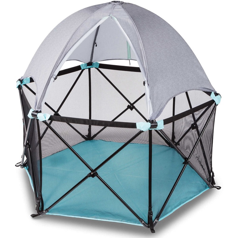- Full coverage canopy blocks 98% of harmful UVA/UVB rays