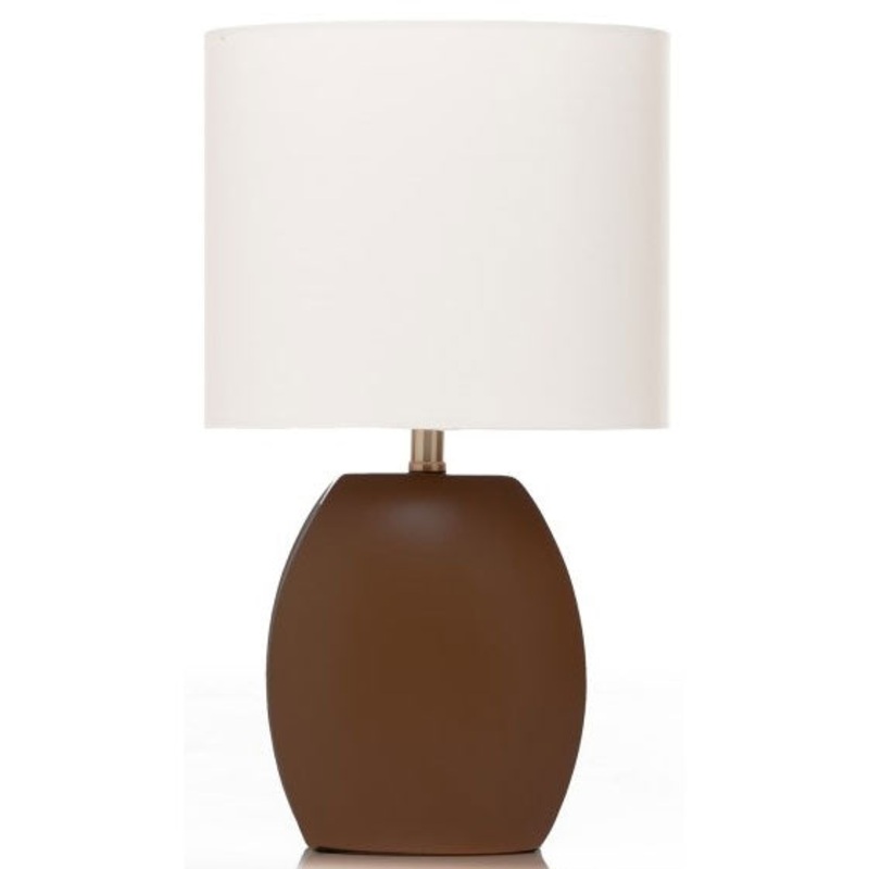 The Contemporary Brown Table Lamp with Off White Shade by Glenna Jean is an elegant accessory with a fun spirit. It is 16.5 inches tall and uses 1 60 watt light bulb.