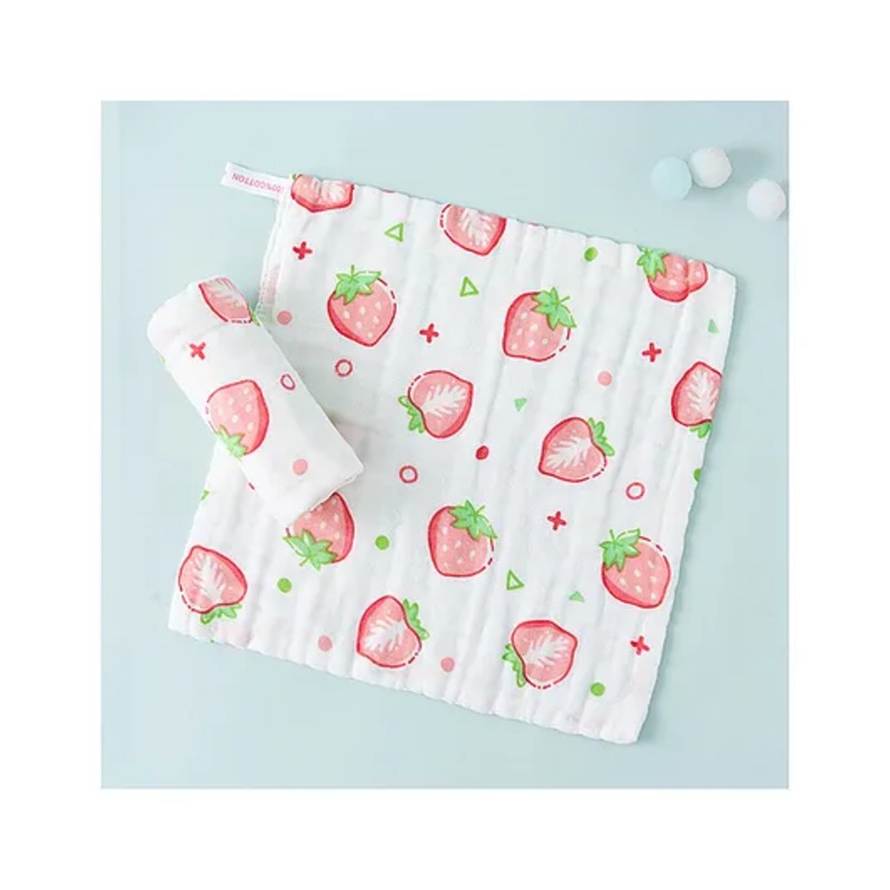 SYGA Baby Cotton Square Cartoon Towel Swaddle Flannel Baby Printed Towel – White and Pink