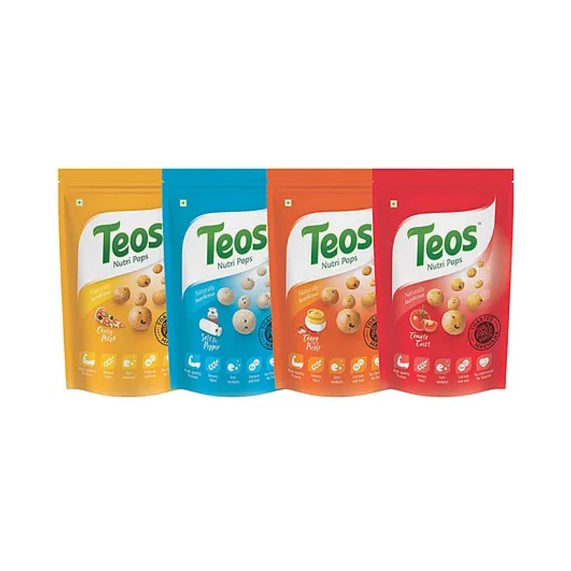 Teos Nutri Pops Makhana Variety Pack – Cheesy Pizza – Salt & Pepper – Tangy Pickle – Tomato Twist – Healthy Snack 2-10yrs (4x65g)