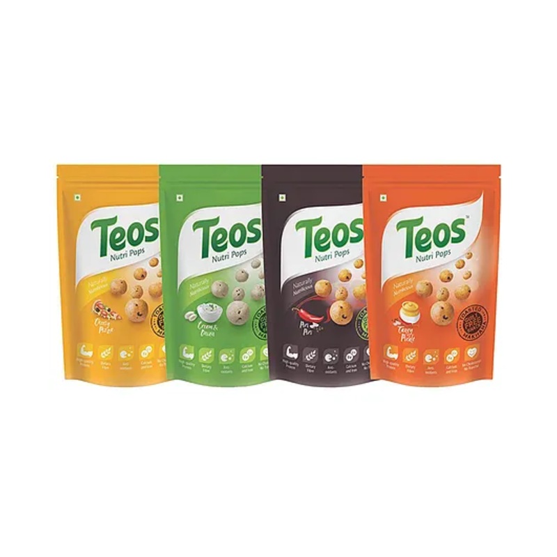 Teos Nutri Pops Roasted Makhana Cheesy Pizza Cream And Onion Piri Piri And Tangy Pickle Pack Of 4 – 65 g Each