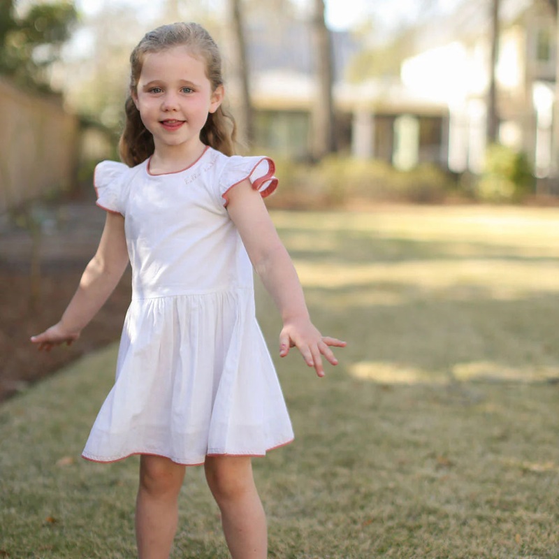 We say, sometimes it's best to let the clothes do the talking! One of our favorite sayings, 'Hello Darlin' is sweetly hand stitched on the collar. Matching piping around the collar and flutter sleeves are sweet added details that makes this dress pop!You k