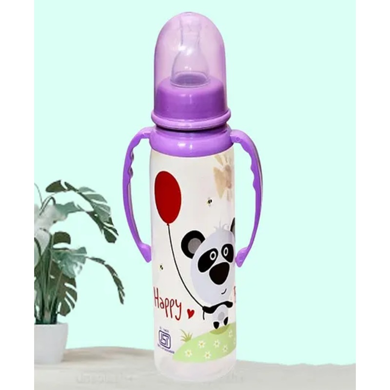 The Cheeky Kidzz Baby Feeding Liquids Milk Feeder Polypropylene Slim Neck 250 ml Bottle Sipper With Anti Colic Silicone Nipple BPA Free With Handles (PURPLE)