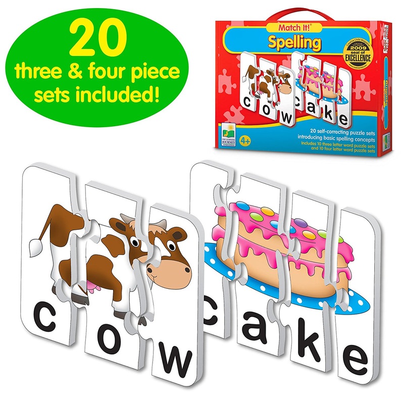 This colorful set of three-letter and four-letter puzzle cards provides children with an introduction to spelling. They can learn to spell by associating the object with the word and correctly assembling the puzzle pieces. The puzzles are self-correcting -