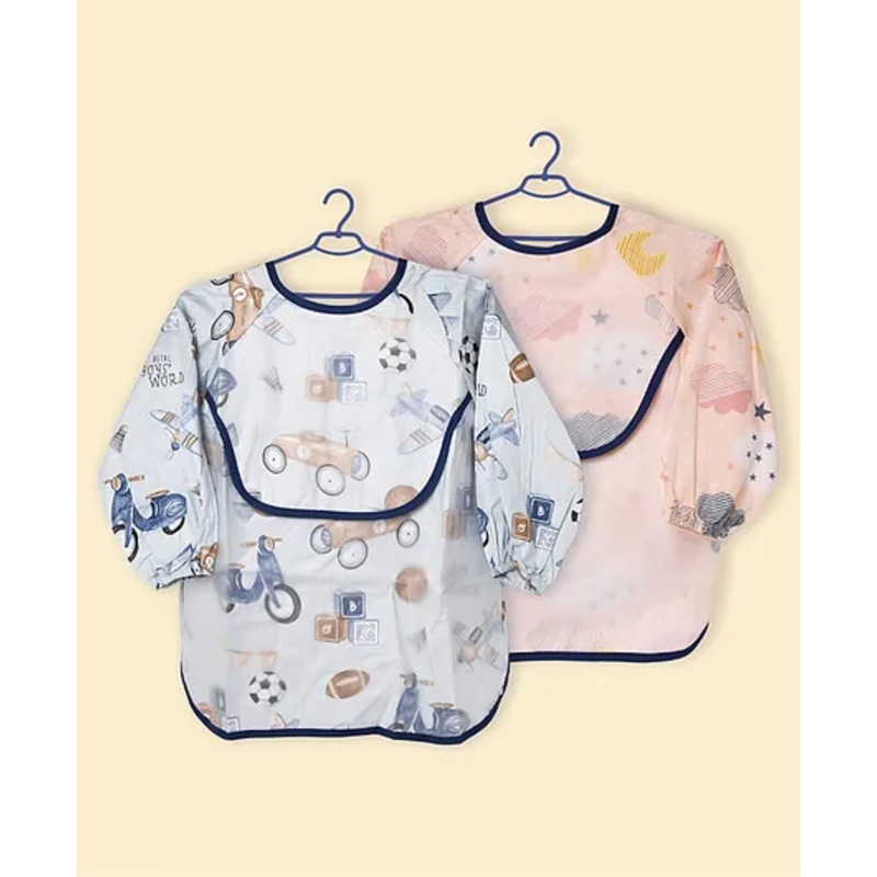 The Little Lookers Baby Bibs with Pocket I Long Sleeved Bib for Toddlers, Kids I Washable, Lightweight & Waterproof, Bibs for 6-24 Months Baby – Print May Very (blue & Peach)