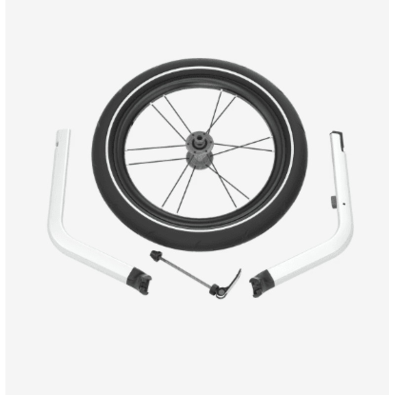 Converts your Thule bike trailer into a high performance jogging stroller. Includes aluminum arms and a 16 Quick Release Wheel. For one-seat strollers.