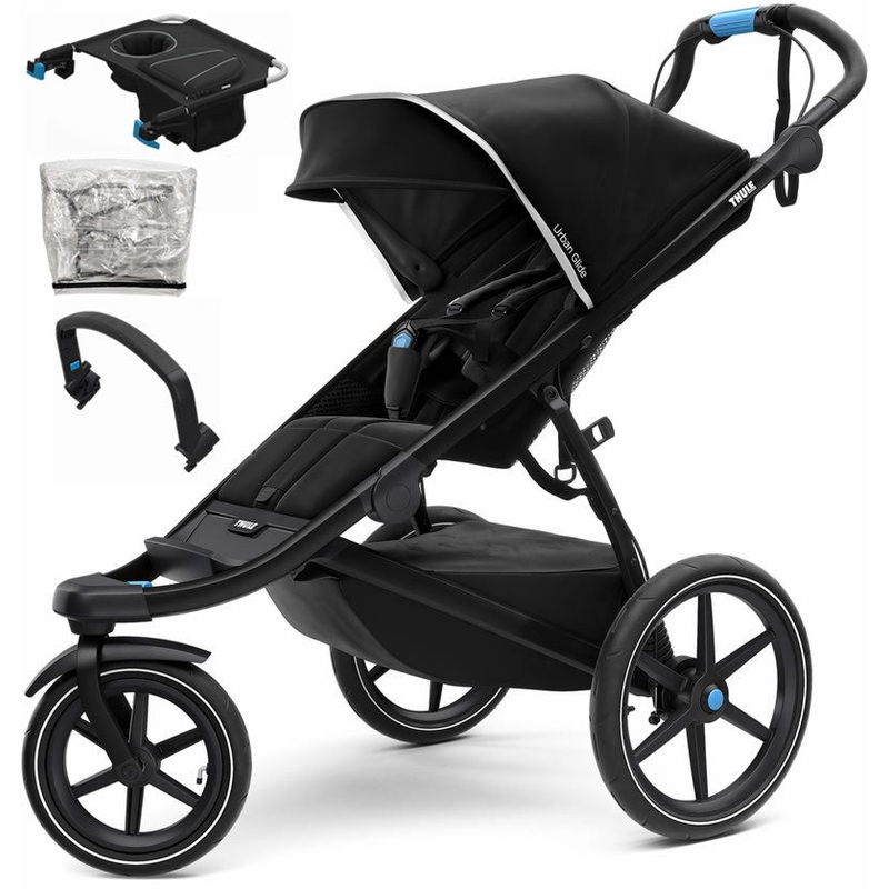 - Easy to maneuver, thanks to the swivel front wheel that locks into place for jogging, and to the 16? rear wheels